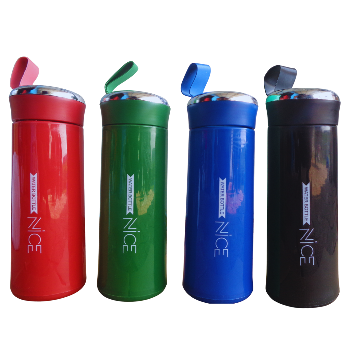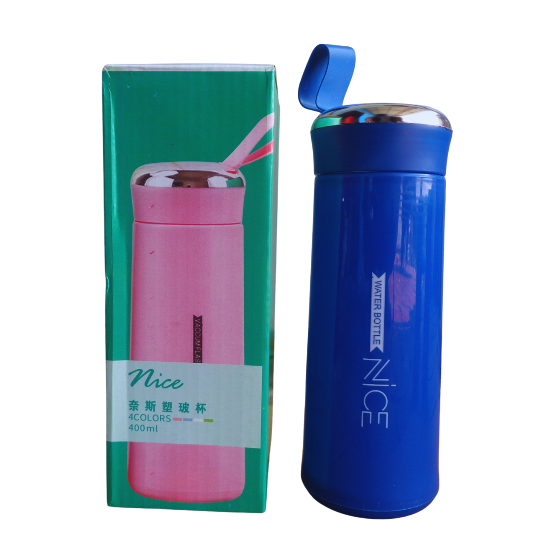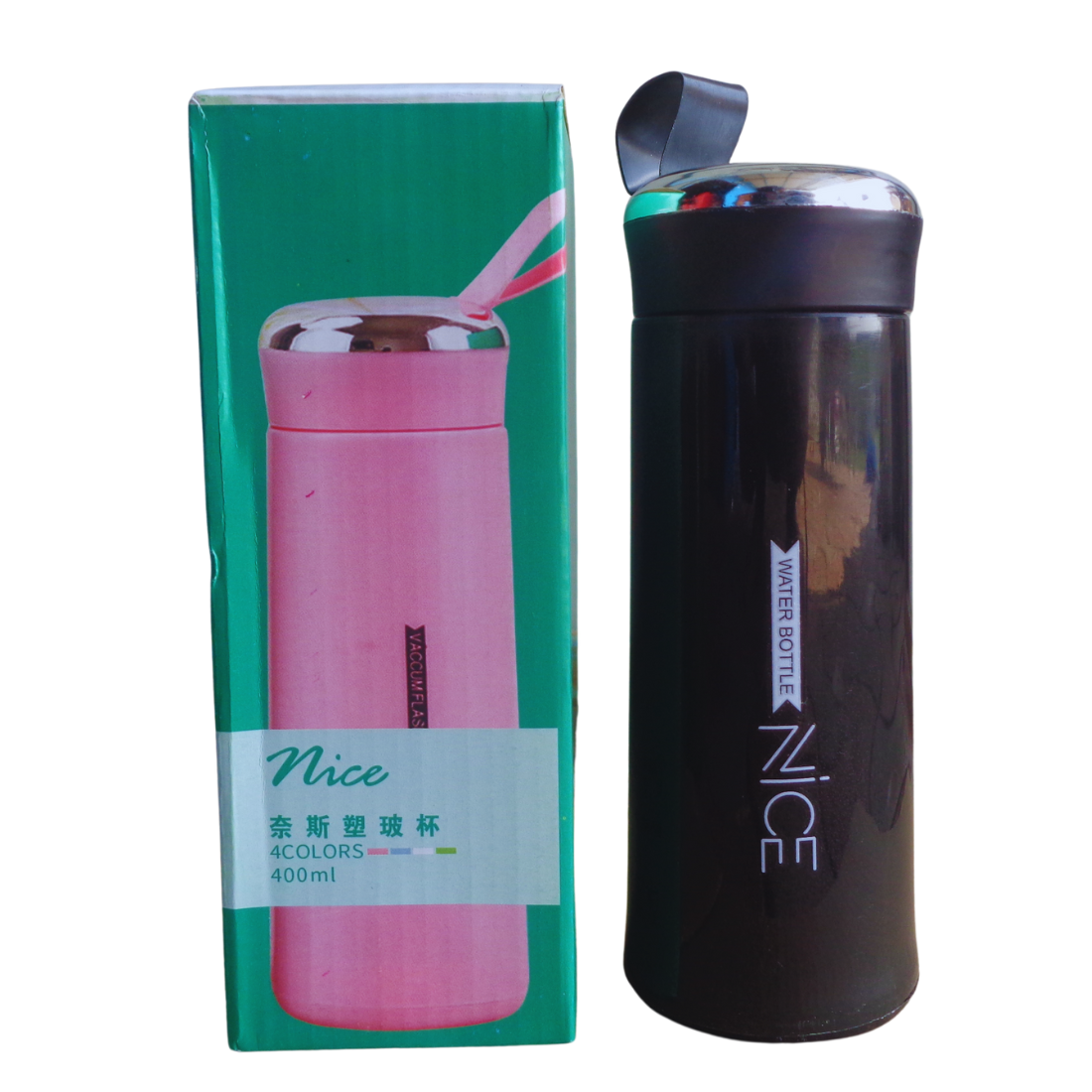 Nice Water Bottle Glass with Plastic Coating 400ml Can